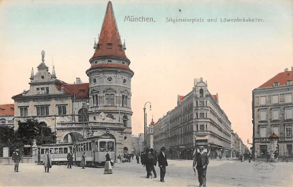 Duitsland München Tram Siglmaierplatz und Lowenbraukeller Deutschland Europa HC52820 Rabat