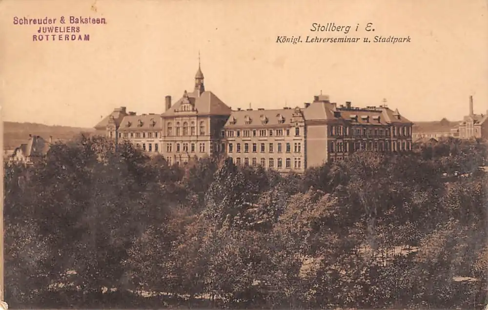 Verlag: Alban Schnabel, Stollberg i. E. 12 63073. Ongelopen beschreven ansichtkaart met reclamestempeltje op de voor- en achterzijde van de kaart. Heel lichte vouw links. Vlekjes bovenrandje achter.