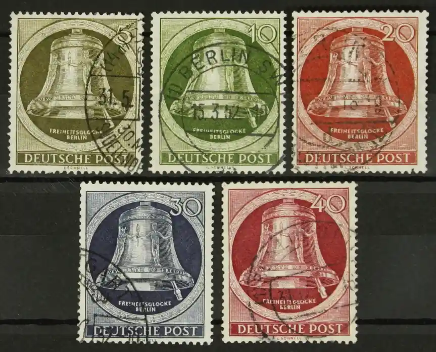 Berlijn (West) 1951, Michel 82-86, Vrijheidsklok (II), (klepel naar rechts), complete serie, gestempeld / used