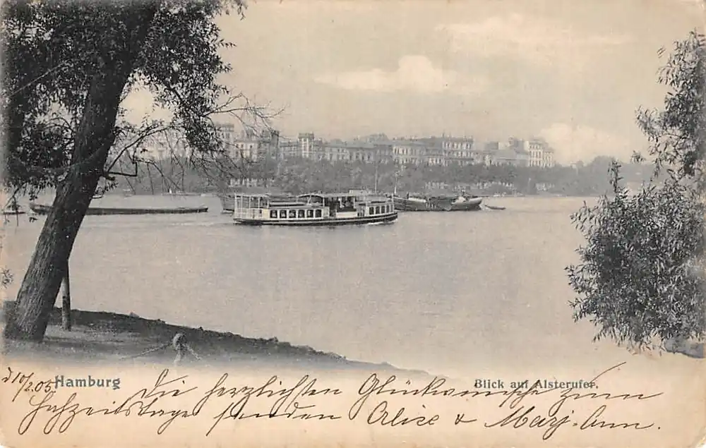 Ekspresowa dostawa Duitsland Hamburg Blick auf Alsterufer 1904 Scheepvaart Binnenvaart schepen Deutschland Europa HC8846