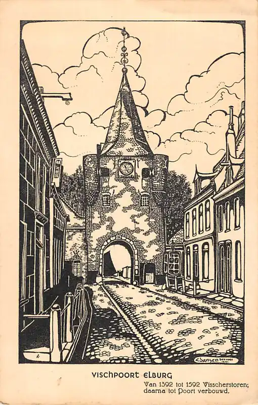 Uitgave Elburger Boek- en Kunsthandel. K 1759. Gelopen ansichtkaart met postzegel en stempel. Formaat 9,5 x 14,8 cm.