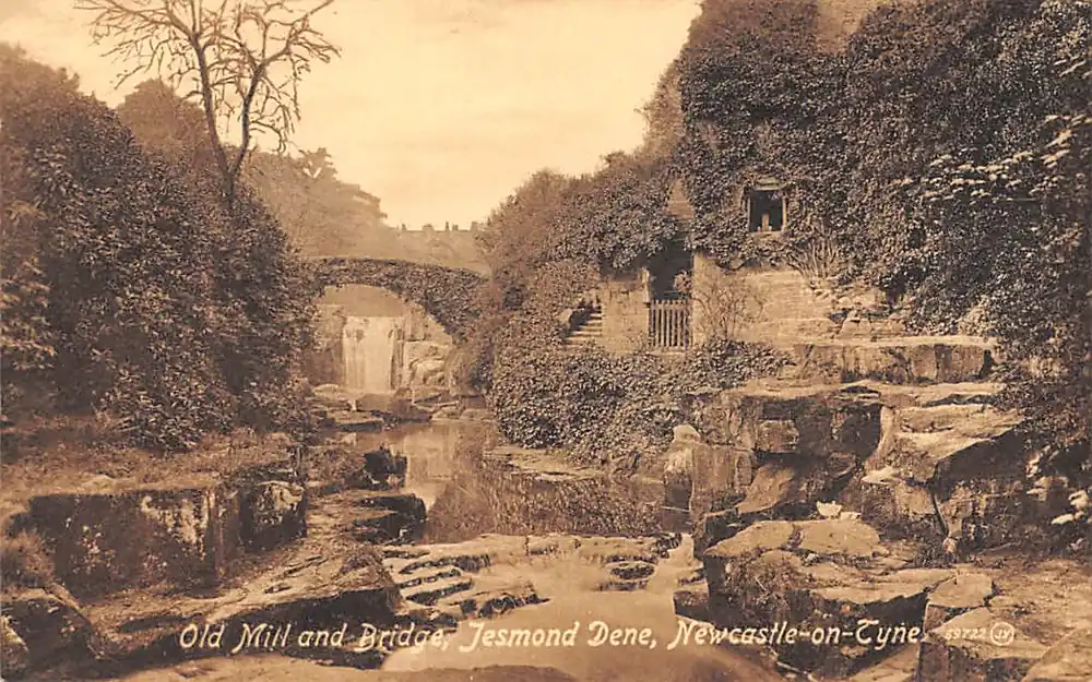 Engeland Newcastle-on-Tyne Old Mill’ and bridge Jesmond Dene England Europa HC34314 Autentyczny