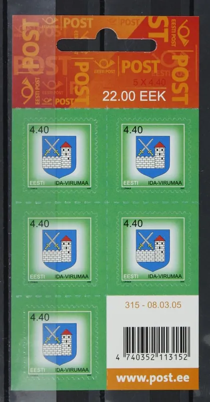 Estland 2005, Michel 507, velletje met 5 zelfklevende zegels, Gemeentewapen Virumaa (Wierland), postfris / MNH