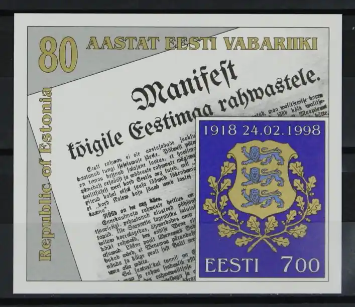 Estland 1998, Michel Blok 11, 80e Verjaardag van de Proclamatie v.d. Republiek, postfris / MNH