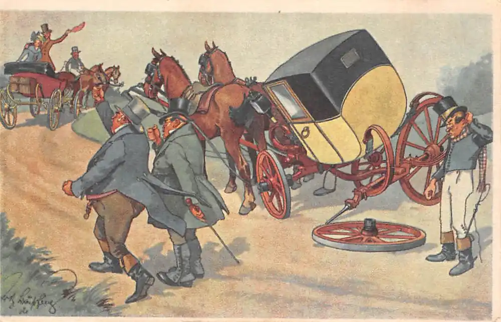 Fantasie Paarden en verongelukte koets koets Illustrator Frits Schönpflug Vintage Duitsland Deutschland EuropaHC56361 Wysoka jakość