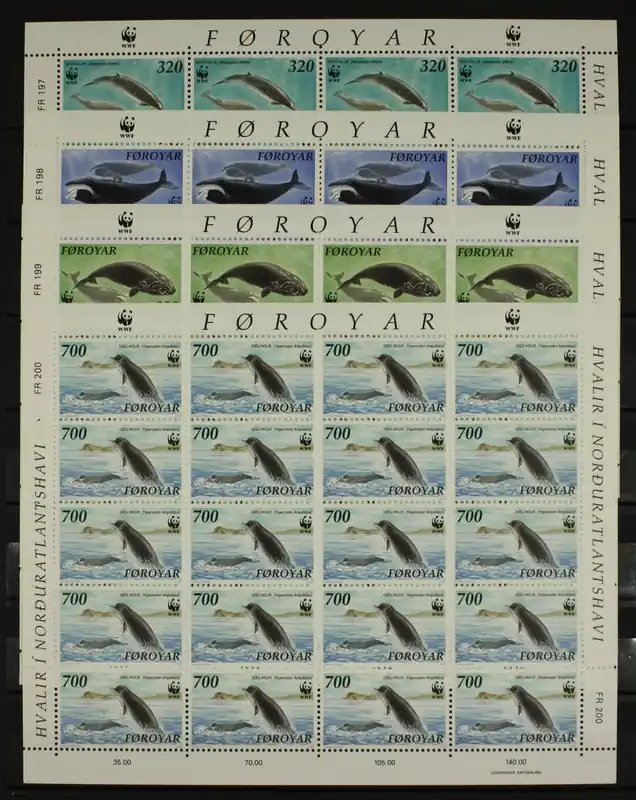 Faroër 1990, Michel 203-206, Walvissen, Complete serie in postfrisse velletjes / MNHCataloguswaarde € 160,00!