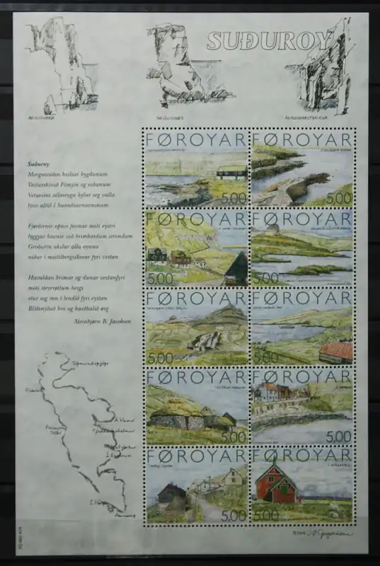 Färöer 2004, Michel 473-482 in Kleinbogen, Dorpen/plaatsen op het eiland Suõuroy, postfris / MNH