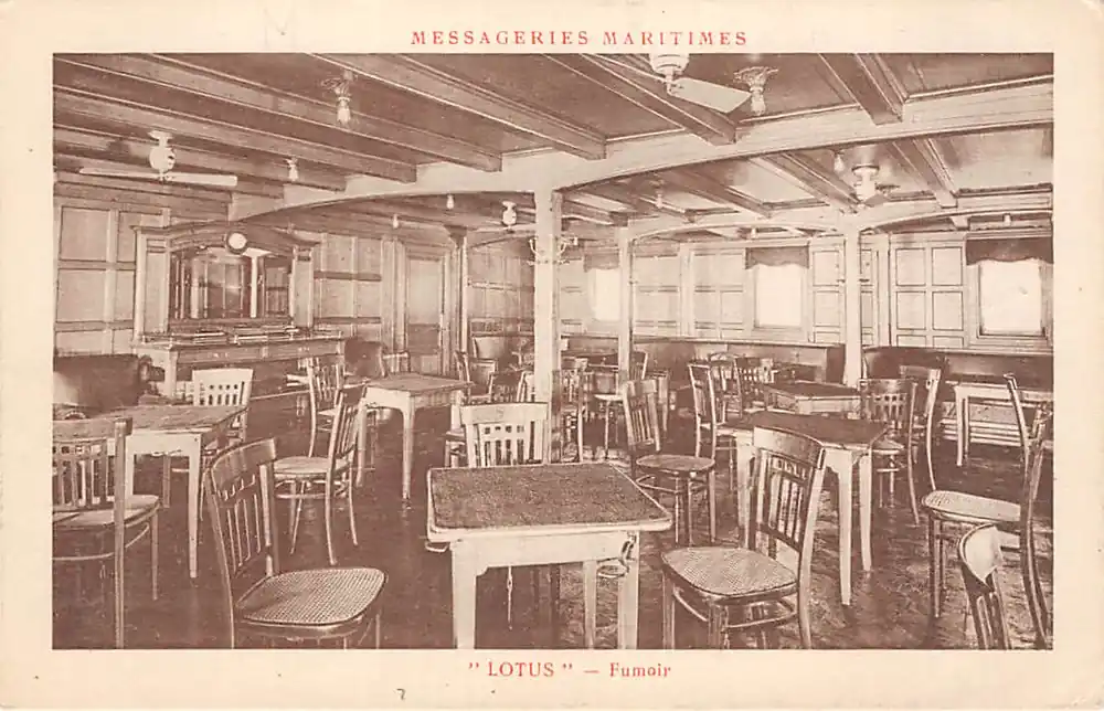 Messageries Maritimes.Imp. Davissat, Paris. Ongelopen ansichtkaart. Knikje wit onderhoekje rechts.