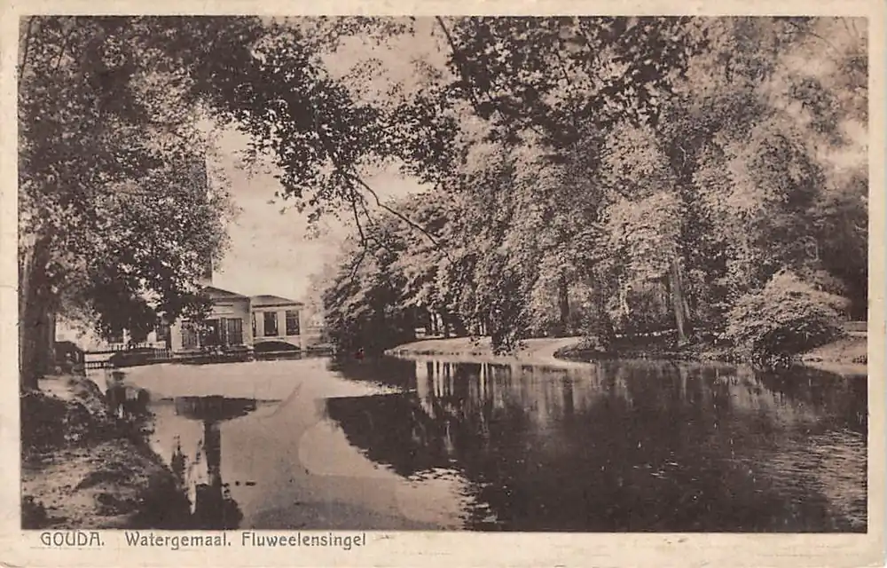 Gouda Fluweelensingel Watergemaal langs de IJssel en Houtmansplantsoen 1930 HC6412 Tylko dziś