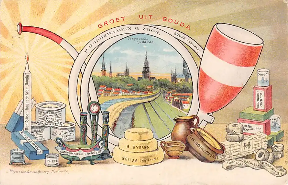 Uitgave van S.W. van Buuren Nz. Gouda. Gelopen ansichtkaart met postzegel en stempel 1900. Vlekje achter en hoekjes miniem gesleten.