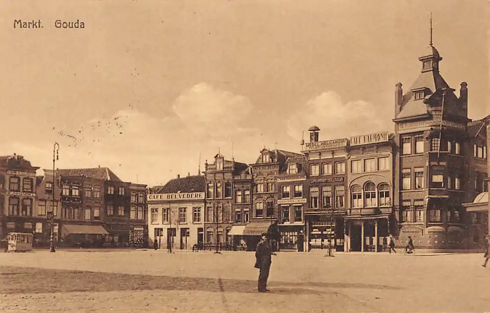 Gouda Markt met Hotel, Goedewaagen Bank, Cafés en Restaurants 1932 HC15797 Tylko dziś