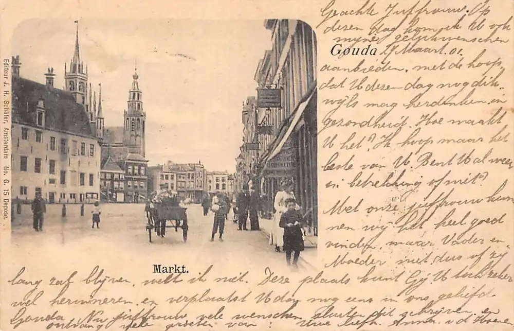 Editeur J.H. Schaefer. No. G. 15. Gelopen ansichtkaart met postzegel en stempels 1901.