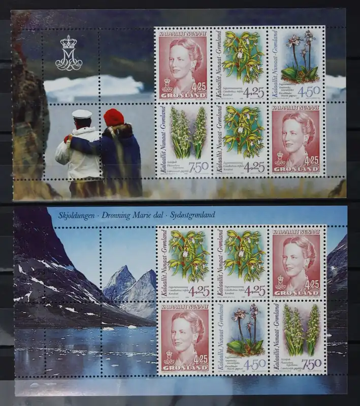 Groenland 1996, Michel 283-286 in 2 velletjes uit boekjes, Koningin Margrethe en Orchideën (II), postfris / MNH
