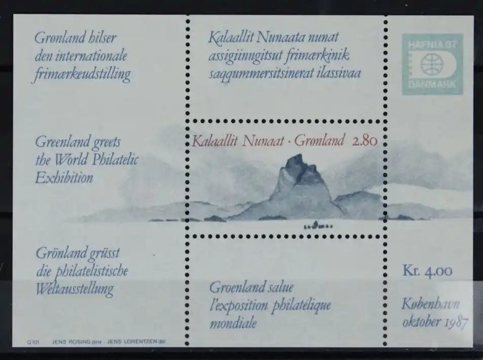 Groenland 1987, Michel Blok 2, Int. Postzegeltentoonstelling “Hafnia ’87” (II), postfris / MNH
