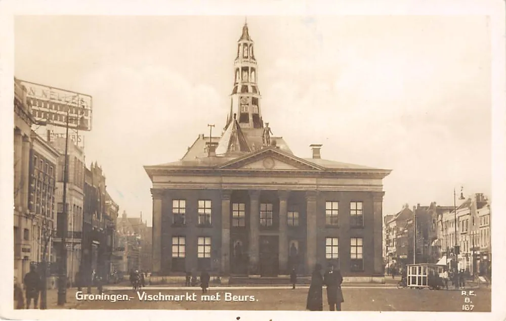 Groningen Vischmarkt met Beurs 1930 Type fotokaart HC17955 Oryginalny