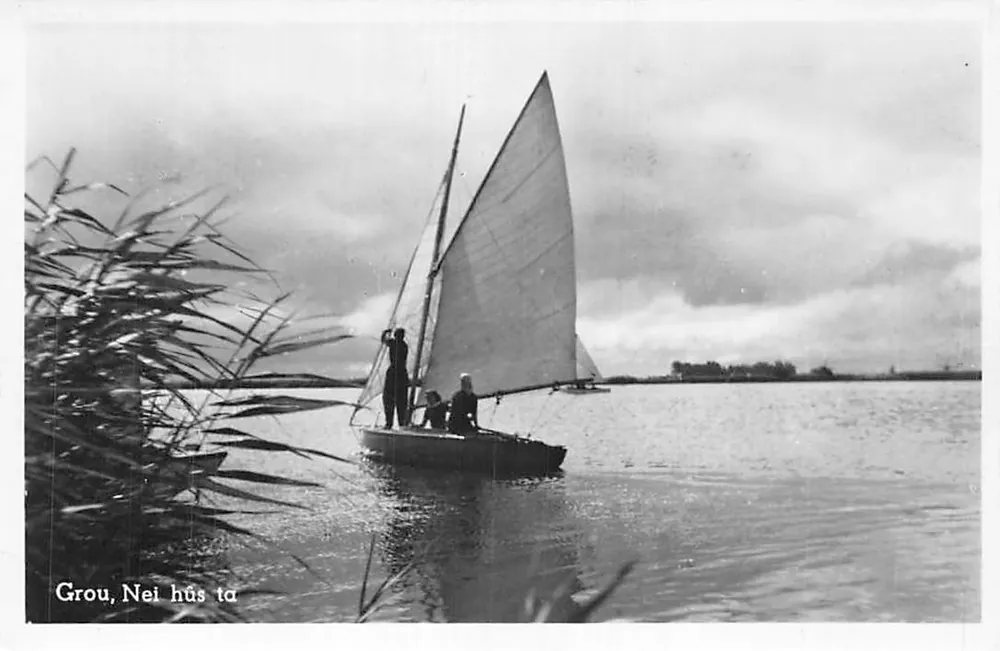 Uitgave Fa. v.d. Spoel & Co. Grouw. Mooie gelopen ansichtkaart met postzegel en stempel Grouw 1950.