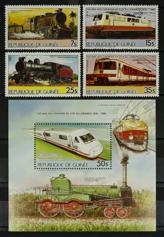 Republiek Guinee, Michel 1118-1122, 150 Jaar Spoorwegen in Duitsland, complete postfrisse serie incl . blok 124 A / MNH