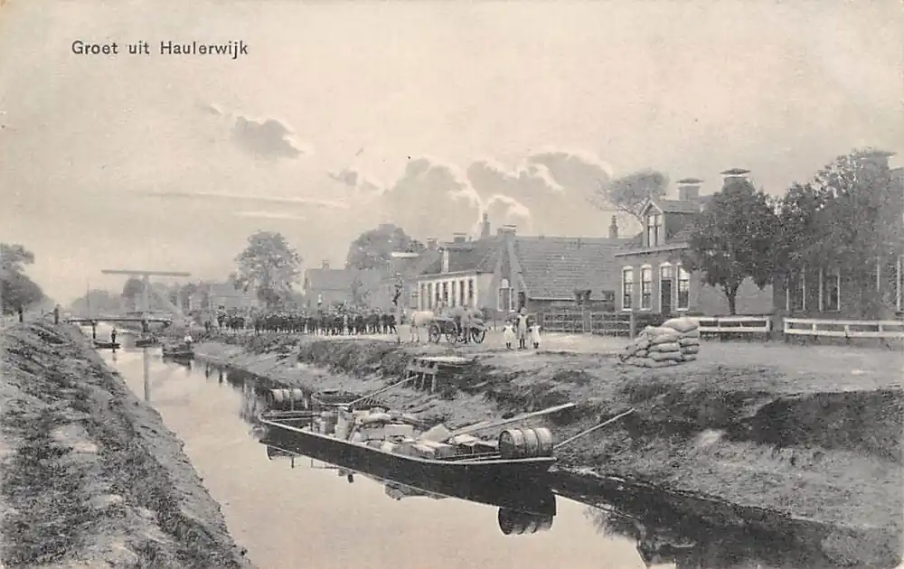 Haulerwijk Groet uit 1915 met volk en schip Ooststellingwerf HC22083 Wyprzedaż