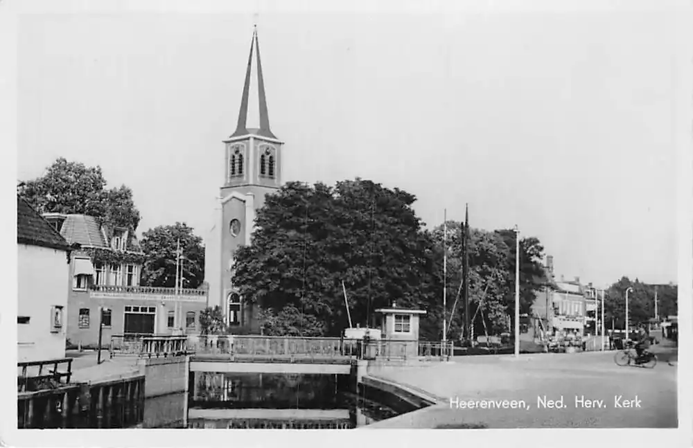 N.V. Heerenveensche Boekhandel Heerenveen. Mooie gelopen ansichtkaart met postzegel en stempel Heerenveen 1946.
