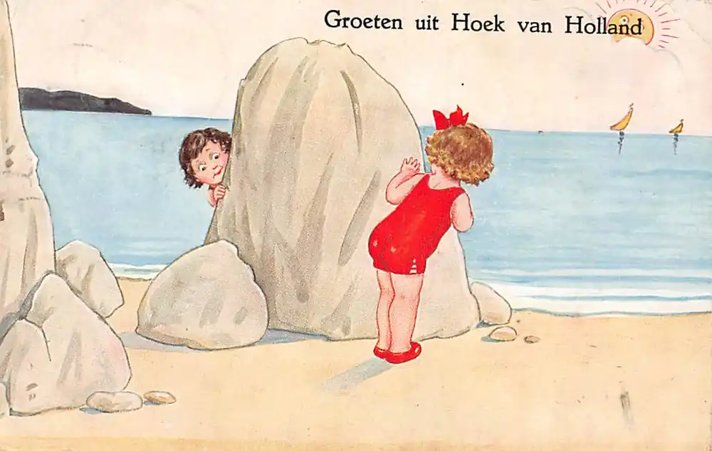 Hoek van Holland Groeten uit 1925 Kinderen op het strand HC3016 Autentyczny