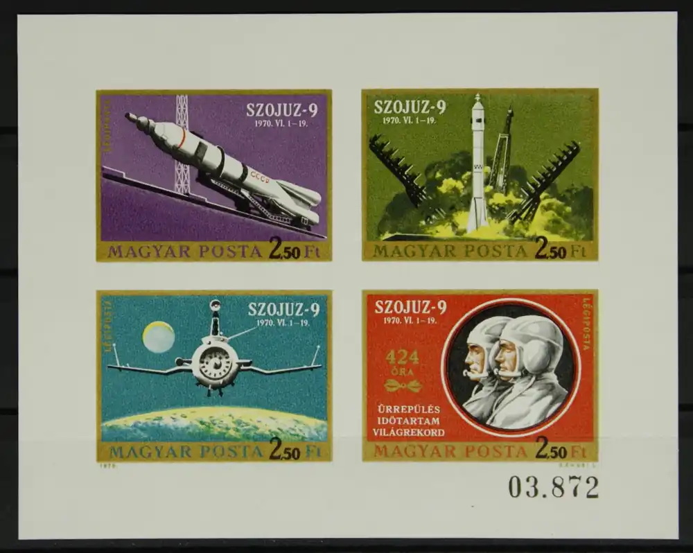 Hongarije 1970, Michel 2611-2614 B, Ruimtevaart: Sojus 9, ongetande Kleinbogen, postfris/MNH