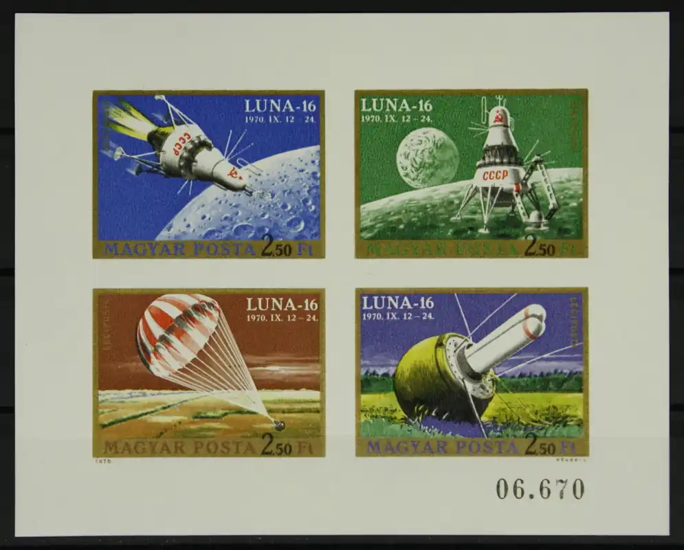 Hongarije 1971, Michel 2642-2645 B, Ruimtevaart: Luna 16, ongetande Kleinbogen, postfris/MNH