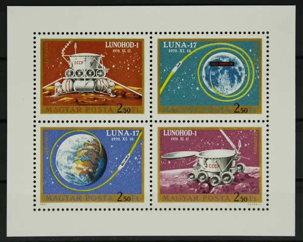 Hongarije 1971, Michel 2654-2657 A, Ruimtevaart: Luna 17, getande Kleinbogen, postfris/MNH
