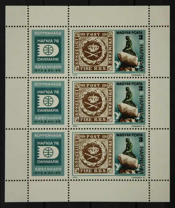 Hongarije 1976, Michel 3133 A, Postzegeltentoonstelling Hafnia, getande Kleinbogen, postfris/MNH