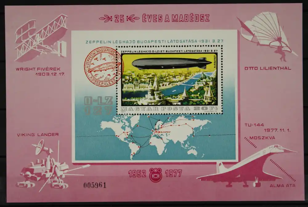 Hongarije 1977, Michel Blok 127 A -I, Groter formaat blok, Geschiedenis van het luchtschip / Zeppelin, getand, postfris/MNH