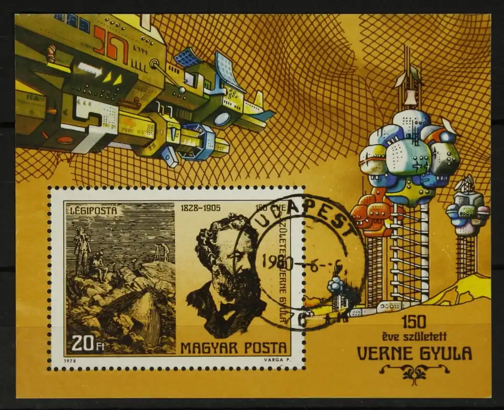 Hongarije 1978, Michel Blok 133 A, 150e Geboortedag van Jules Verne, getand blok, gestempeld/used