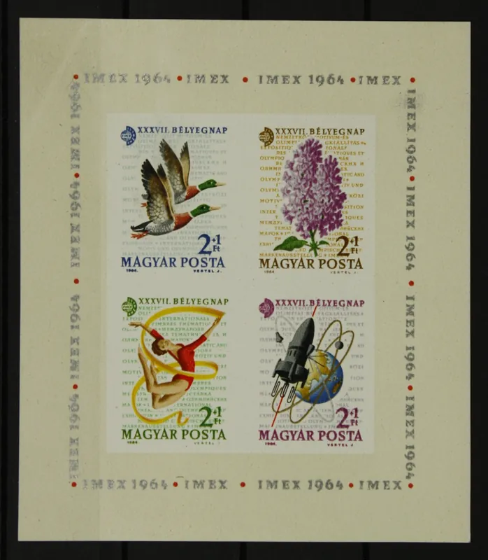 Hongarije 1964, Michel Blok 42 B, Dag v.d. Postzegel, Bloemen-Turnen-Ruimtevaart, ongetand, postfris/MNH
