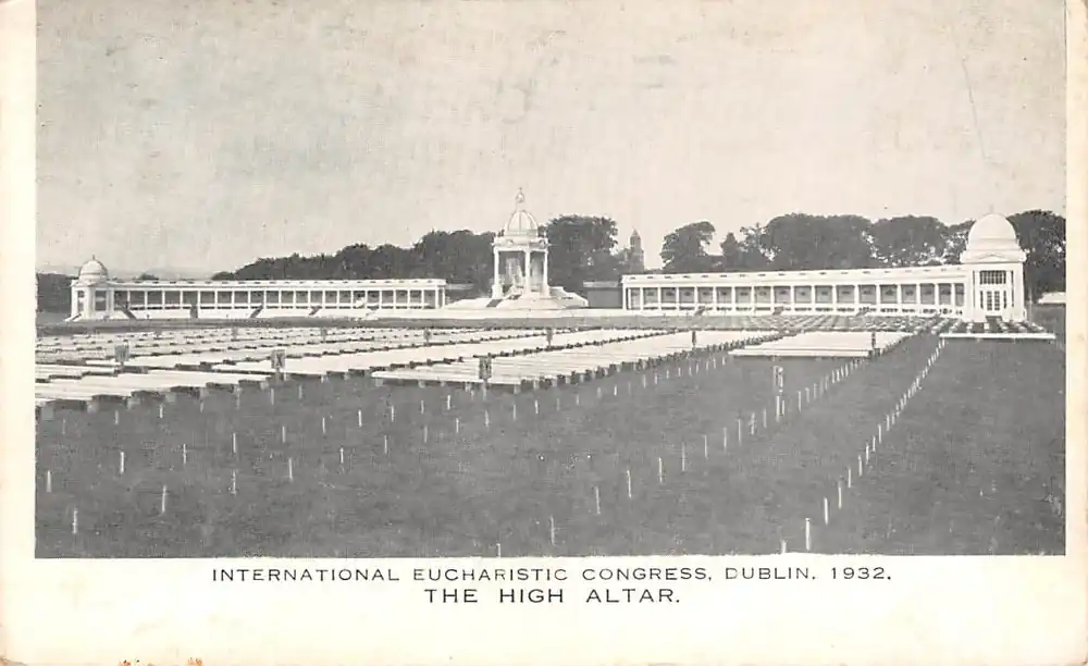 Gelopen ansichtkaart met postzegels en stempel June 1932.\\r\\n\\r\\nThe\\u00a031st International Eucharistic Congress, held in\\u00a0Dublin\\u00a022\\u201326 June 1932, was one of the largest\\u00a0eucharistic congresses\\u00a0of the 20th century. Ireland was then home to over three million Catholics, and it was selected to host the congress as 1932 was the 1500th anniversary of\\u00a0Saint Patrick’s arrival.[1]\\u00a0The theme was \\