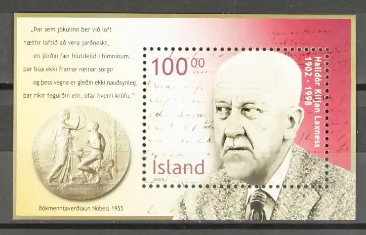 IJsland 2002, Michel Blok 30, 100e Geboortedag van Laxness (Schrijver, nobelprijswinnaar), postfris / MNH