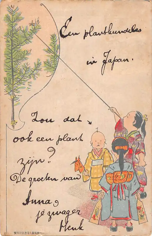 Verzonden vanuit Japan, via America naar Rotterdam. Hoekjes en randjes miniem gebruikt.