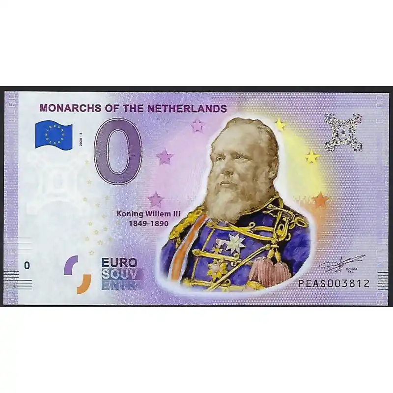 0 Euro biljet Nederland 2020 – Monarchs of the Netherlands, Koning Willem III Gekleurd