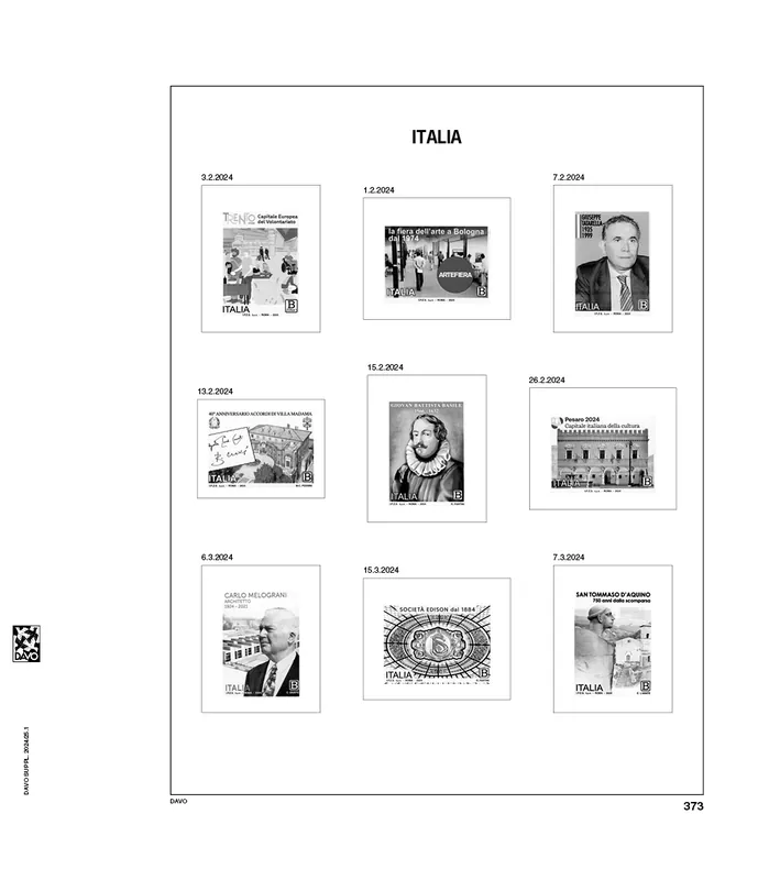 Davo Luxe supplement Italië 2024Bebat 25 Luxe bladen (170 grs. stevig papier), met heldere klemstroken. Bladnrs.: 373 t/m 389, 389a, B87 t/m B93.