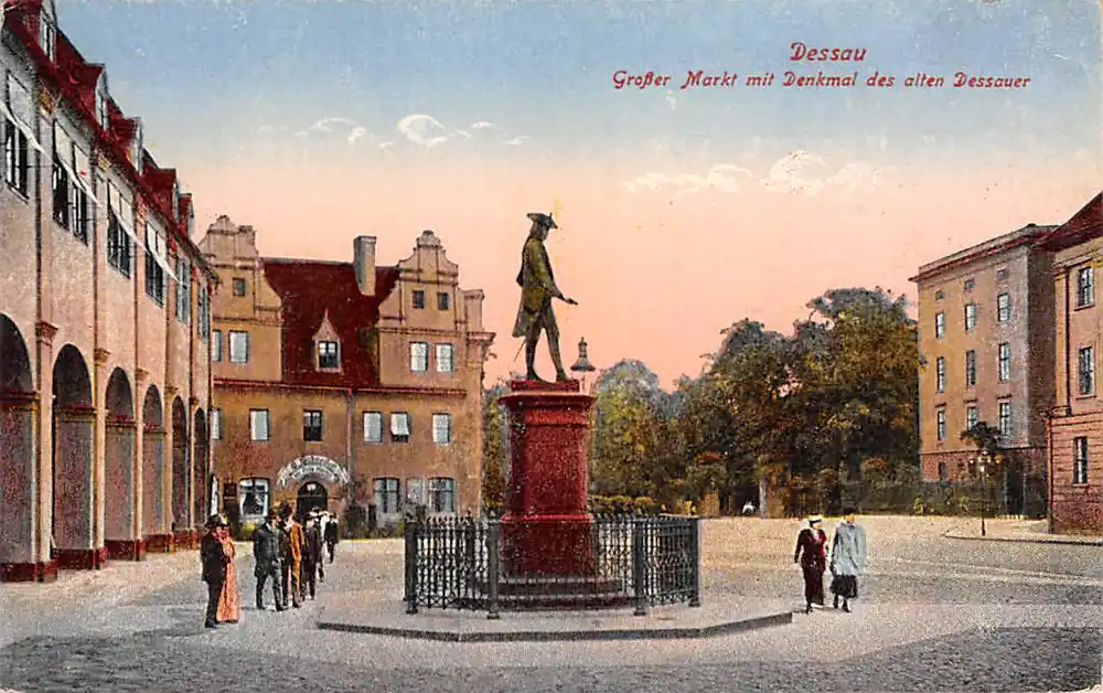 Kup teraz Duitsland Dessau Grosser Markt mit Denkmal des alten Dessauer Deutschland Reclame Boterhandel \\u2018t Klaverblad A. Cats Lage Rijndijk 53 Leiden Deutschland Europa HC29508