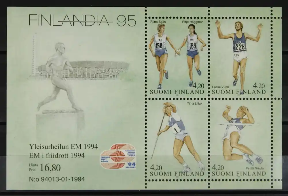 Finland 1994, Michel Blok 12, Int. Postzegeltentoonstelling “Finlandia ’95” / EK Athletiek, postfris / MNH