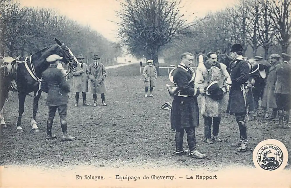 Kup teraz Frankrijk En Sologne Equipage de Cheverny Le Rapport France Europa Paard Herten Jacht HondenHC58236
