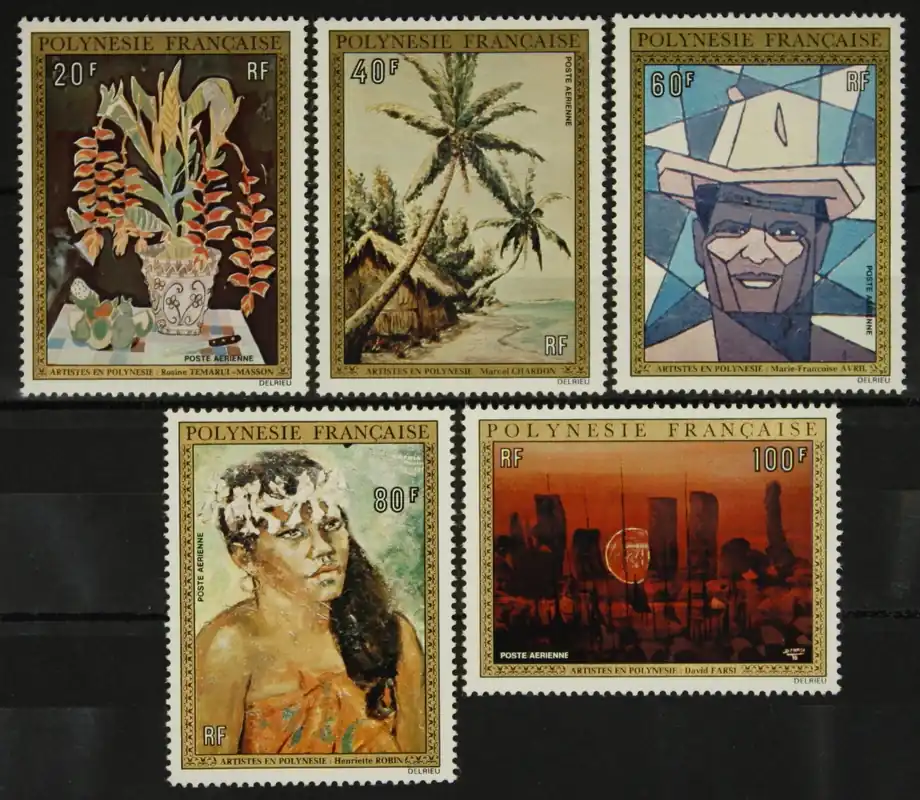 Frans Polynesië 1974, Michel 187-191, Schilderijen van Polynesische kunstenaars, complete postfrisse serie / MNH