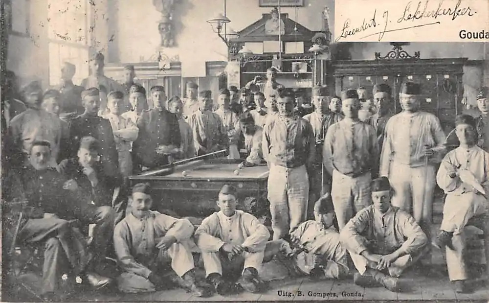 Kup teraz Gouda Kazerne Soldaten rond het biljart Militair 1906 Gompers HC3001