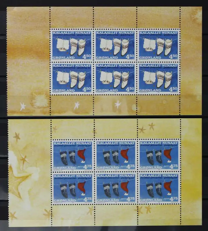 Groenland 1998, Michel 329-330 in 2 velletjes uit Postzegelboekje, Kerst / Kledingstukken, postfris / MNH