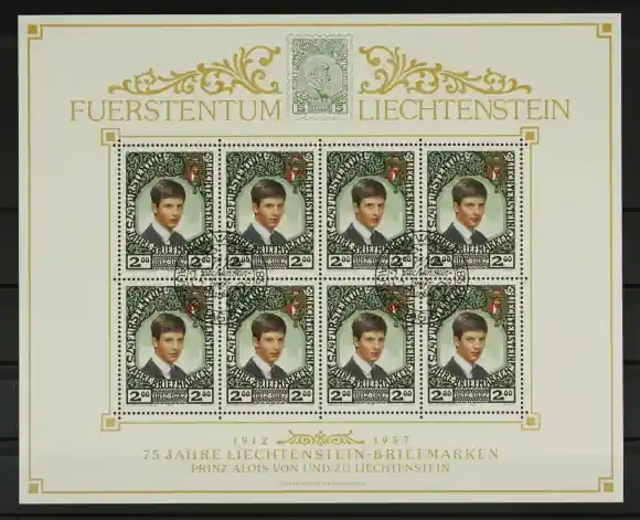 Liechtenstein 1987, Michel 921, 75 Jaar Liechtensteinse postzegels, gestempelde Kleinbogen