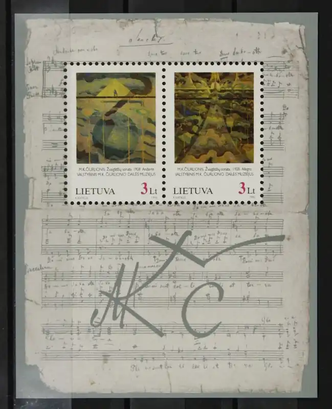 Litouwen 1996, Michel Blok 7, Schilderijen en Composities van Ciurlionis, postfris / MNH