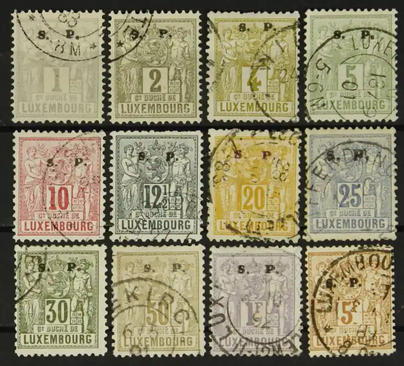 Luxemburg 1882, Dienstzegels Michel 35-46, Allegorie met opdruk S.P., complete gestempelde serie / used set