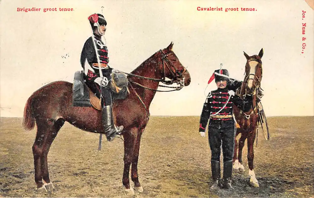 Uitg. Jos. Nuss & Co. Onze Land- en Zeemacht. Serie Cavalerie. No. 6. Gelopen ansichtkaart met postzegel en stempel 1910. Hoekjes oppervlakkig gesleten.