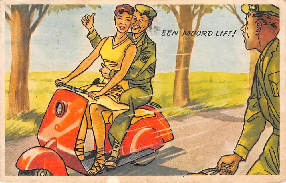 Uitgever niet vermeld. Gelopen ansichtkaart met postzegel en stempel. Hoekjes iets gebruikt.