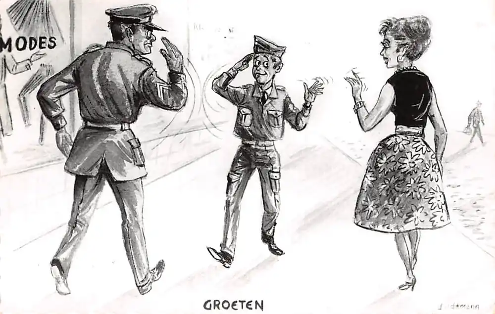 Militair Humor Groeten Cartoon Illustrator Guust Hens 1963 HC25917 Wyprzedaż