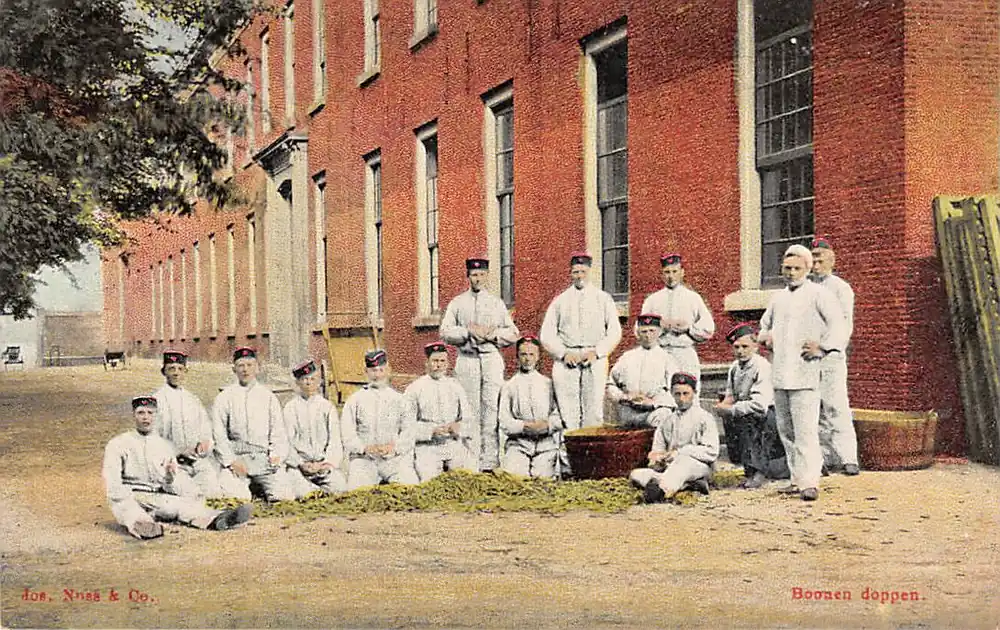 Jos. Nuss & Co. Onze land- en Zeemacht. Kazerne leven. No. 3. Lichte albumvouwtjes in hoekjes. Ongelopen ansichtkaart.