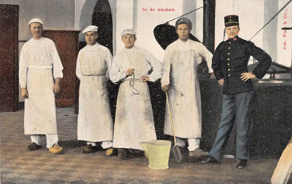 Jos. Nuss & Co. Onze land- en Zeemacht. Kazerne leven. No. 4. Ongelopen ansichtkaart.